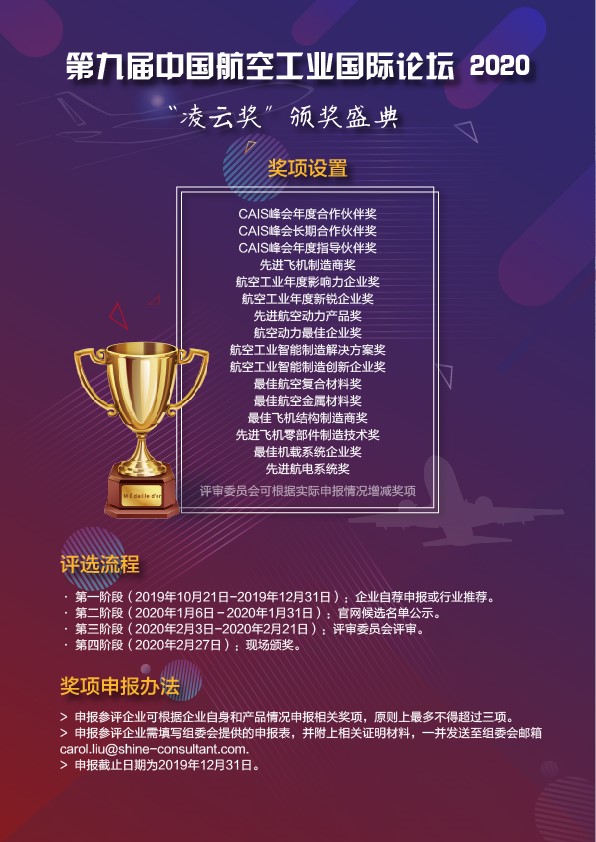 第九届中国航空工业国际论坛2020参会报名及凌云奖奖项申请工作正在进行中,登录活动官网http://www.shine-consultant.com/feedback.aspx预留注册信息或接洽我们获取更多会议内容。等待您的莅临!