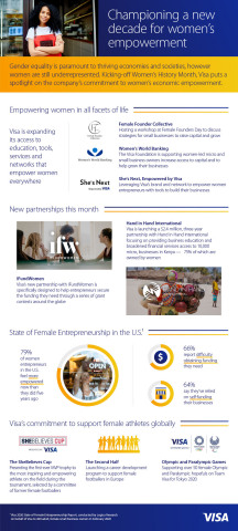 旧金山--(美国贸易资讯)--值此“女性汗青月”之际,Visa (NYSE:V)今天宣布为加强公司对女性经济赋权的承诺建立两项新的合作伙伴关系。Hand In Hand International和IFundWomen将与Visa一同为全球女企业家供给教导资本和资金,赞助她们建立和成长企业。全球女性企业家的增长速度跨越男性企业家1,全球有跨越2.5亿女性介入创业2。