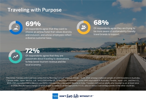 纽约--(美国商业资讯)--美国运通(American Express, NYSE: AXP)今天发布了《美国运通旅游:全球旅行趋势报告》(American Express Travel: Global Travel Trends Report),对新冠肺炎疫情爆发近一年后的消费者旅行心态提供独特见解。基于对美国、澳大利亚、印度、加拿大、墨西哥、日本和英国1等七个国家的调查研究,报告得出的结果表明,消费者期待重启旅行,并且正规划未来的旅行。